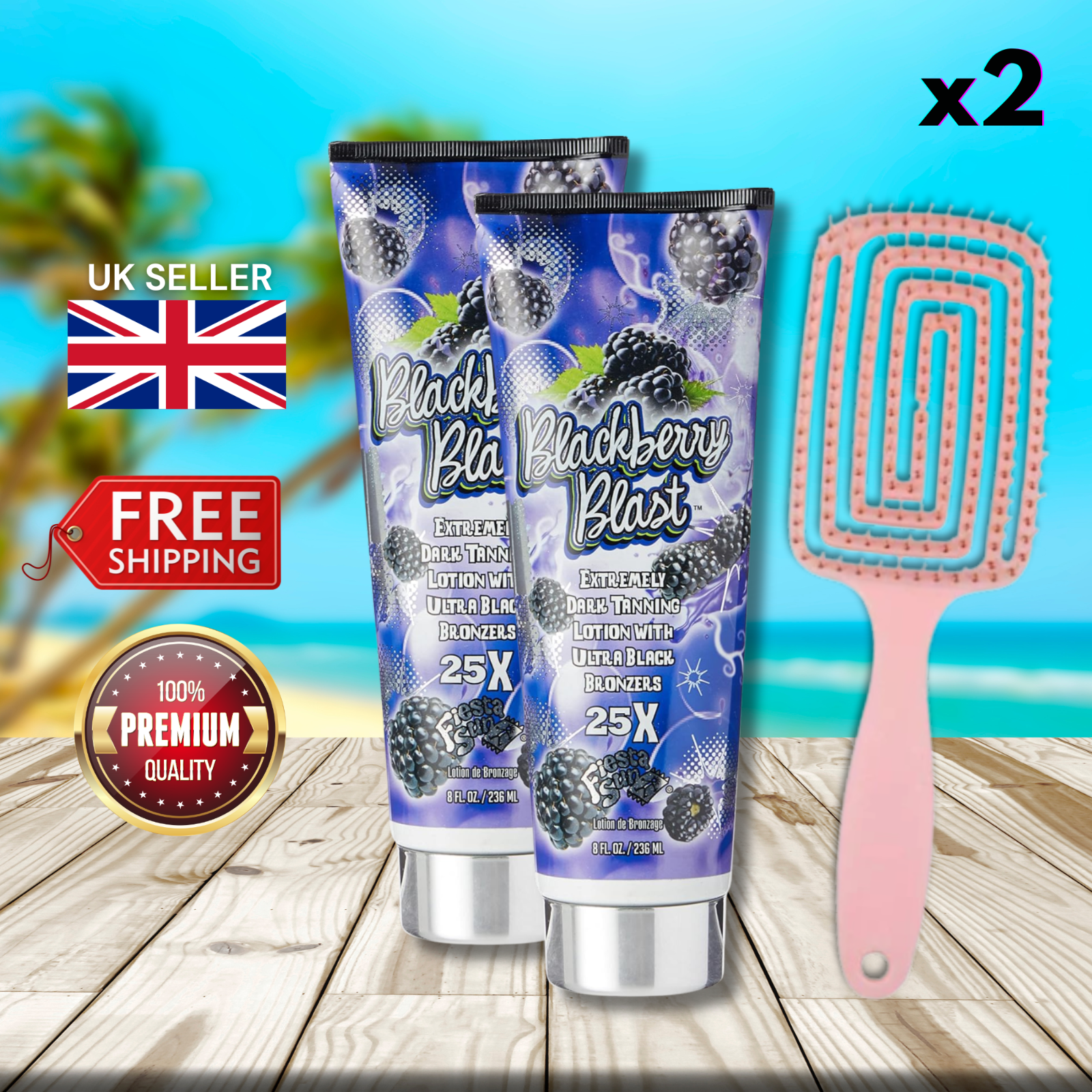 2 x Fiesta Sun Blackberry Blast 236ml + Hair Brush - Extremely Dark Tanning!