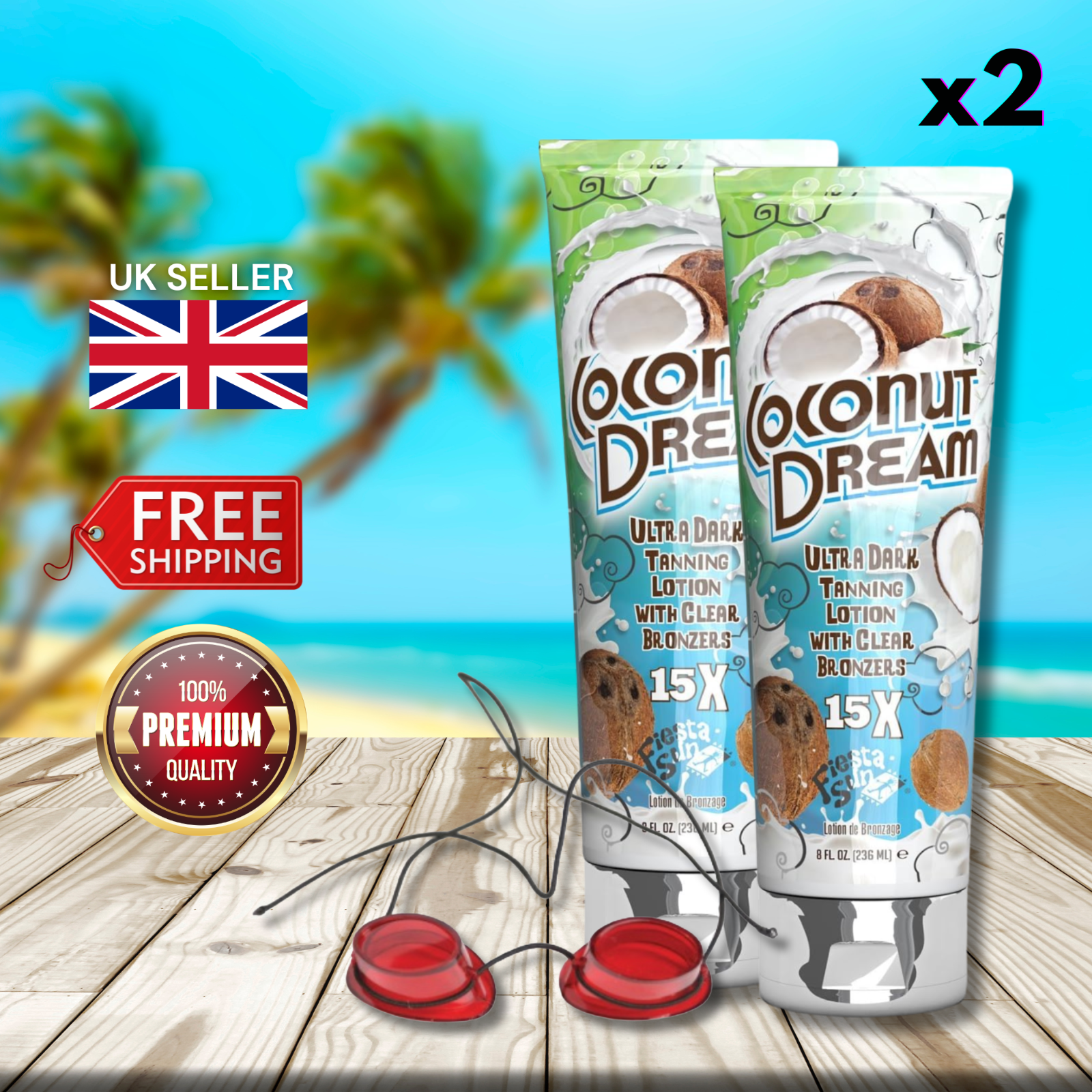 2 x Fiesta Sun Coconut Dream 236ml + Sunbed Goggles - Ultra Dark Tanning Lotion!