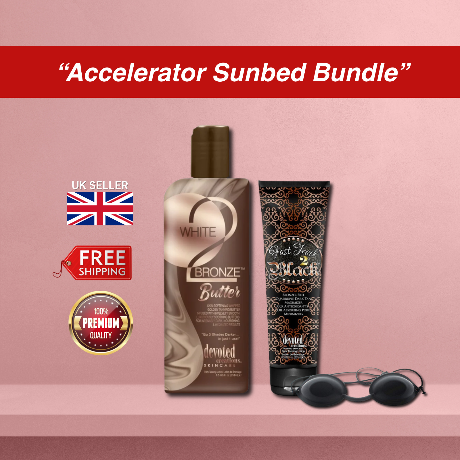 Devoted Creations White 2 Butter with Fast Track 2 Black + Sunbed Goggles Set