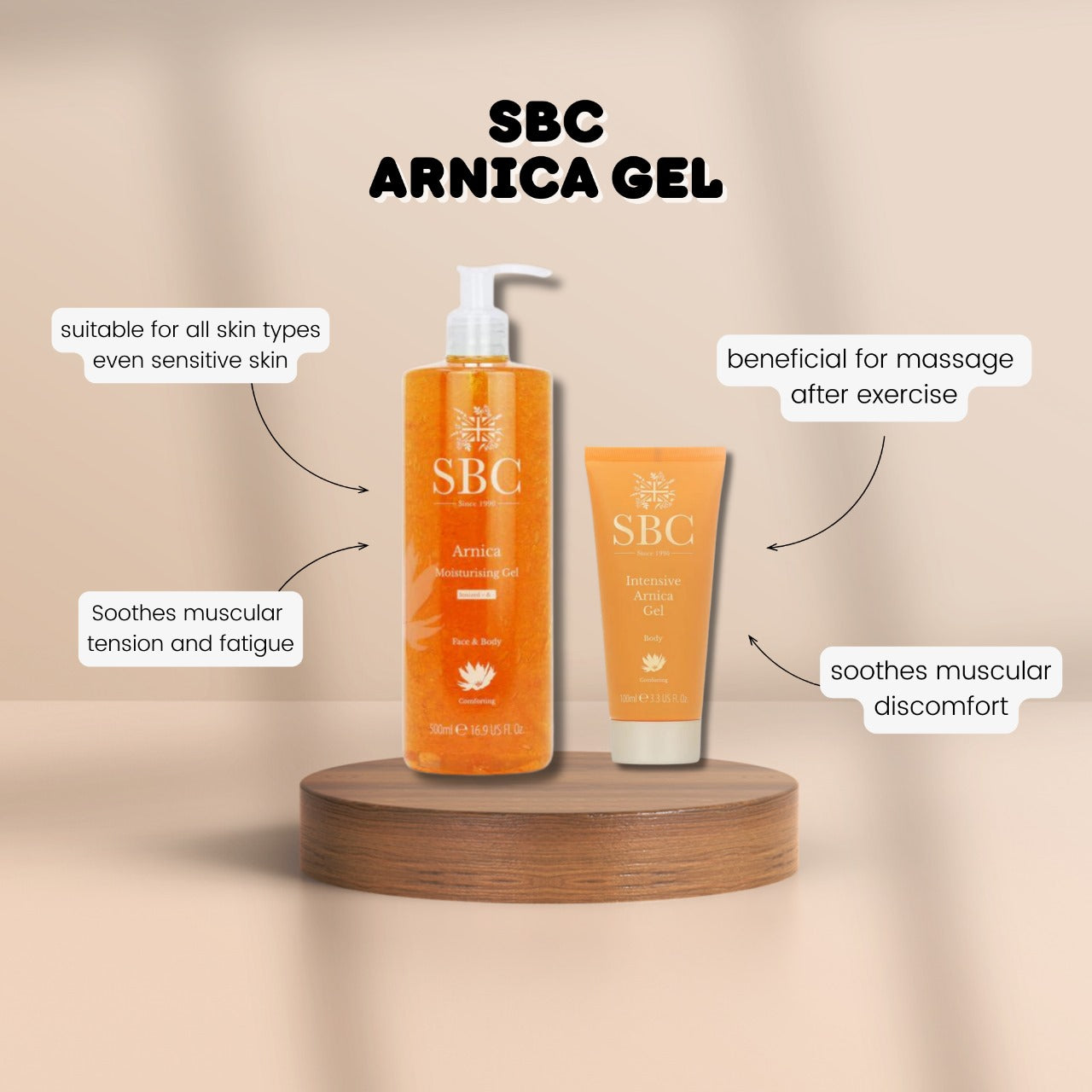 SBC Arnica Gel (500ml): A lightweight, fast-absorbing gel formulated with arnica extract to help alleviate discomfort associated with bruising, swelling, or muscle tension. The large 500ml size is perfect for daily use on targeted areas of the body, delivering cooling relief to tired muscles and joints.